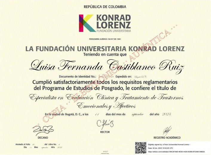 Especialista en evaluación clínica y tratamiento de trastornos emocionales